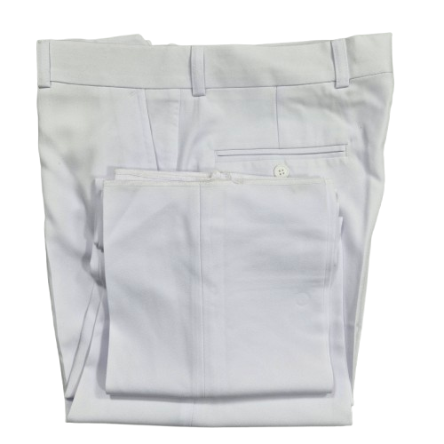 Calça branca de gabardine masculina de ótima qualidade, modelo social tradicional sem pregas, bolso tipo faca e cós reforçado